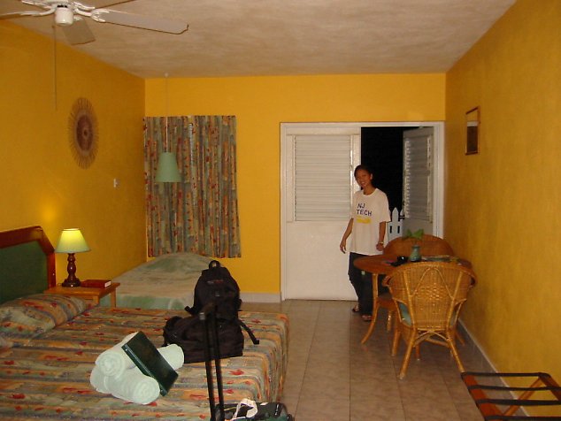 Hotel room at the Coconut Court. Notice: no cable TV and no AC!