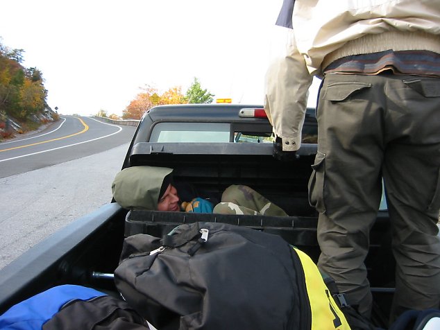 The ride up the mountain is freezing. Joe finds shelter in a trunk.