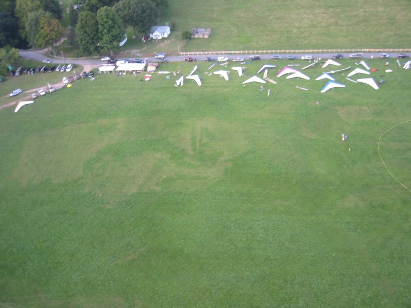 View of the lawn art and hang gliders.